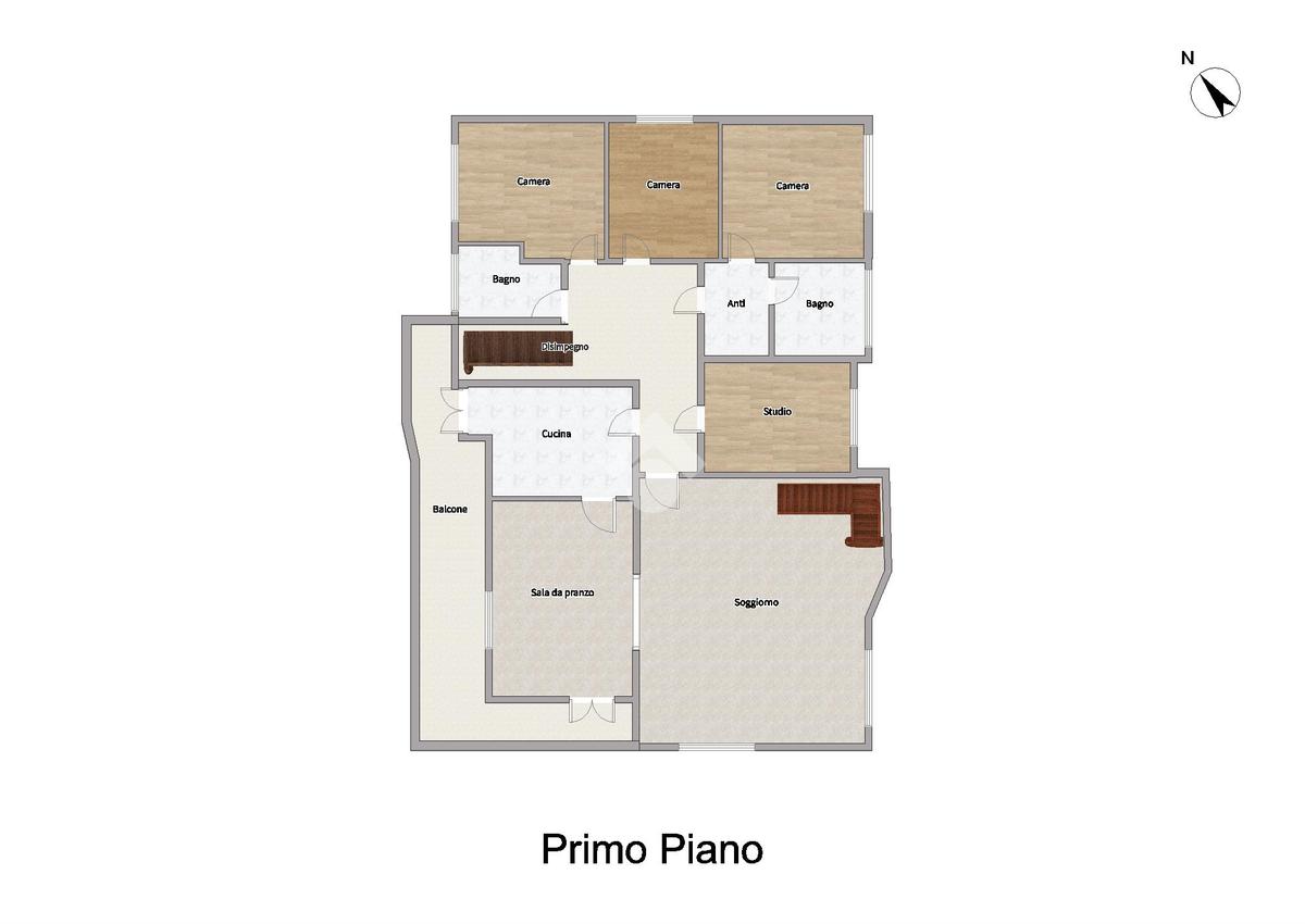 Al primo piano troviamo un'altra zona living con camino, collegata alla sala da pranzo con cucina abitabile oltre a 4 comode camere e a 2 bagni finestrati.